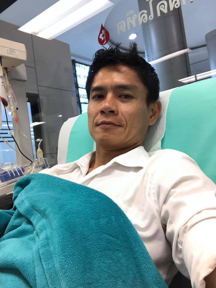 เมื่อเดือนที่แล้ว ผมมาที่กาชาด แจ้งความต้องการบริจาคเกล็ดเลือด แต่ผมมีประวัติเคยบริจาคเกล็ดเลือดครั้งแรกและครั้งเดียวเมื่อ 15 ปีที่แล้ว เขาเลยให้ไปบริจาคพลาสมาก่อน วันนี้เลยได้มีโอกาสมาบริจาคเกล็ดเลือดครับ