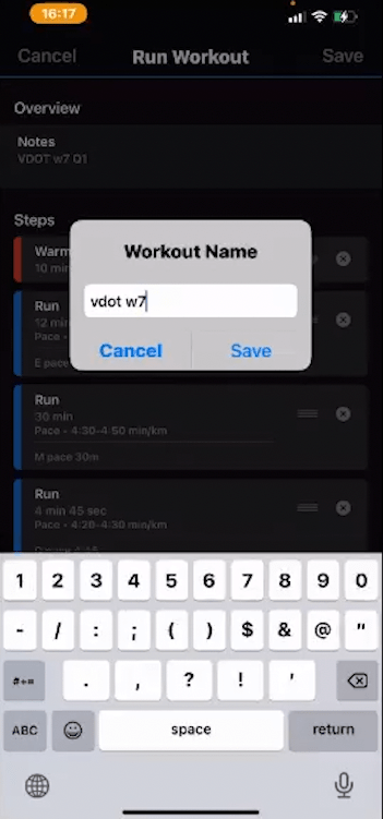 11) ทำขั้นตอน ที่ต้องการซ้อม ใน workout ให้เสร็จ และอย่าลืมกด Save และตั้งชื่อ workout ที่ต้องการ
