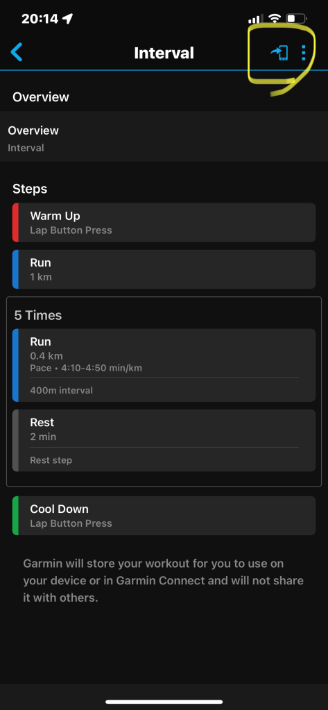 12) กดปุ่มบนขวา เพื่อส่ง workout ไปที่ นาฬิกาครับ