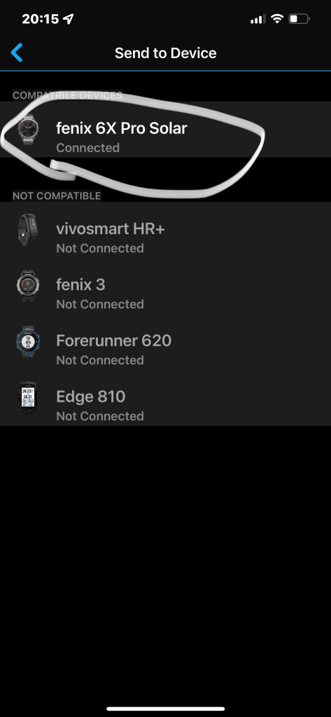 13) เลือก นาฬิกาที่ เชื่อมต่อไว้ที่ต้องการส่ง workout ไป