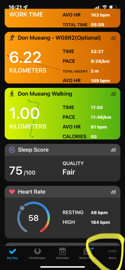 1) กด ปุ่ม จุด สามจุด ด้านล่างขวา แอพ Garmin Connect
