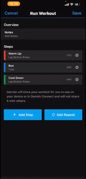 สร้าง Garmin Workout ผ่านแอพ Garmin Connect