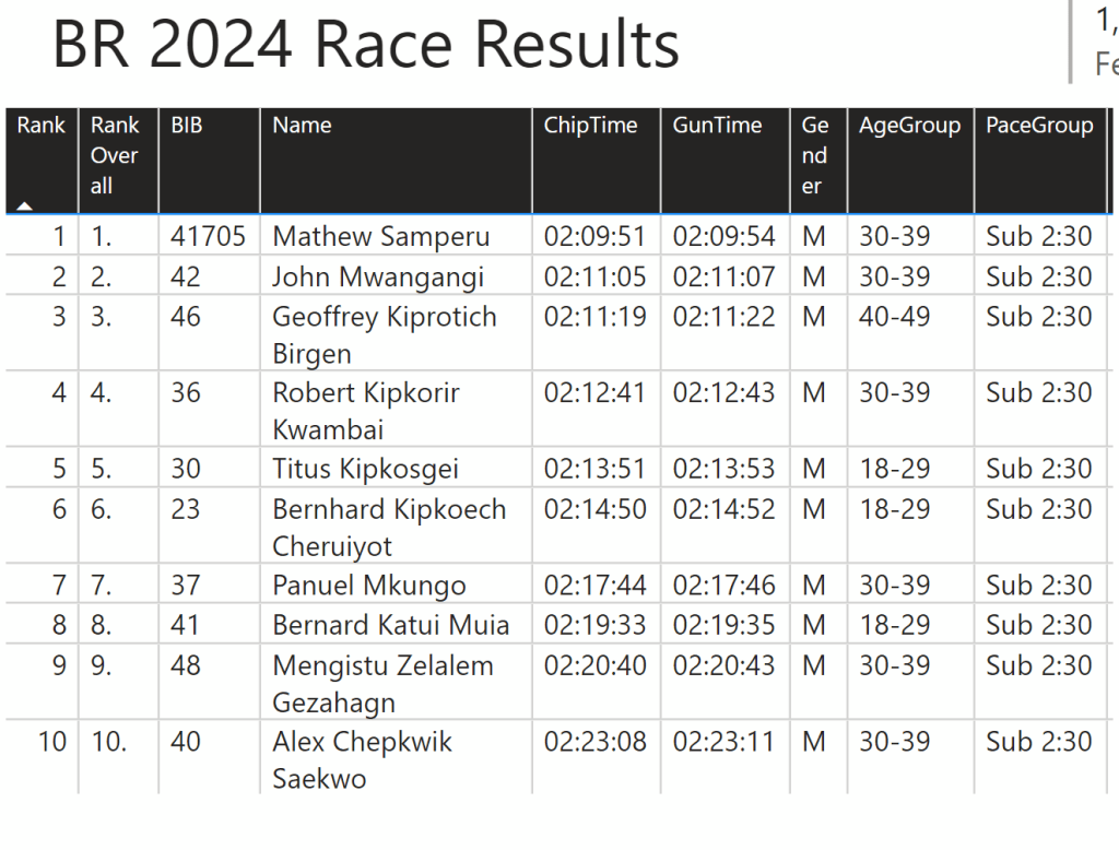 รับชมเวอร์ชันวิดีโอและสถิติงานวิ่งในงาน Buriram Marathon 2024 ในรูปแบบกราฟ Power BI ได้ลิงค์ด้านล่าง