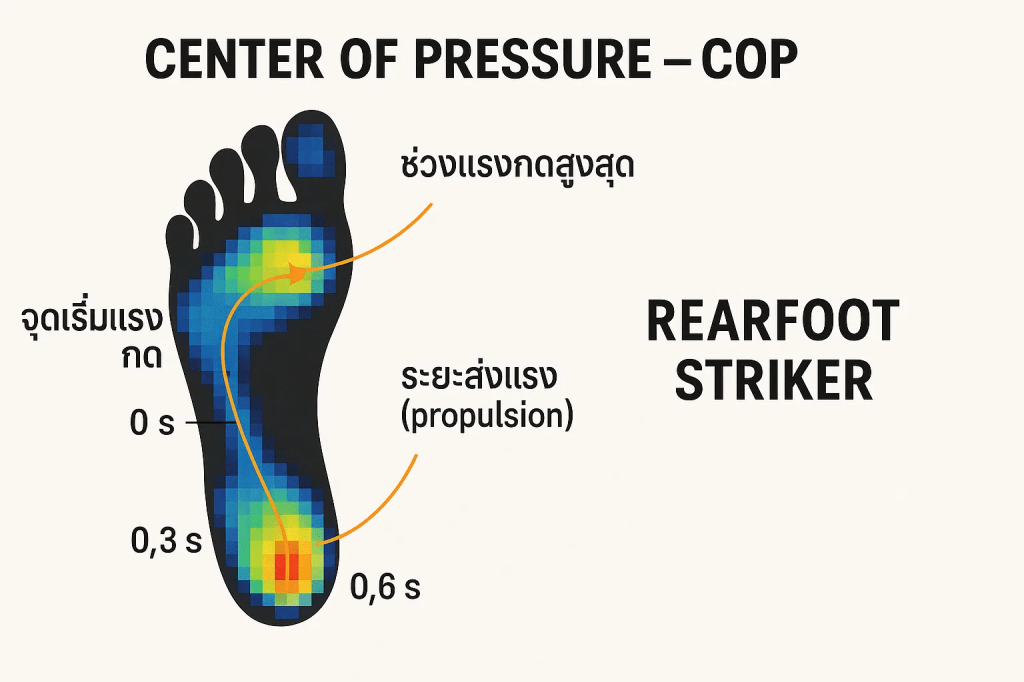 - นักวิ่งระยะไกลส่วนใหญ่ (~80%) ลงส้น (rearfoot striker)