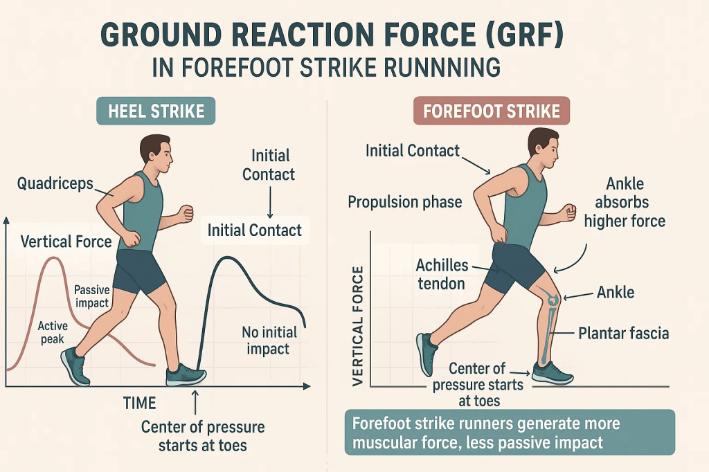 จากข้อมูลทางชีวกลศาสตร์พบว่า นักวิ่งระยะไกลประมาณ 80% จะลงเท้าแบบ ส้นเท้าสัมผัสพื้นก่อน (rearfoot strike) ขณะที่ที่เหลือส่วนใหญ่เป็น midfoot strike ซึ่งเป็นการวิ่งแบบควบคุมจังหวะ ใช้พลังงานแอโรบิก และเน้นความอึดในการวิ่งระยะยาว