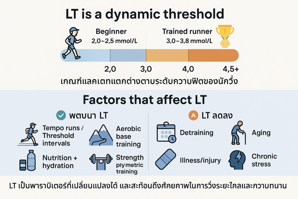 Lactate Threshold ส่งผลอย่างมากต่อความสามารถของนักวิ่งในการรักษาระดับความพยายาม และกำหนดสิ่งที่เกิดขึ้นระหว่างการวิ่งประเภทต่างๆ: