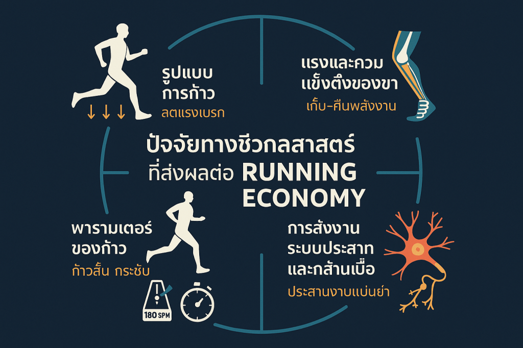 โดยสรุป: Running Economy เป็นคุณสมบัติแบบองค์รวม การปรับปรุงหมายถึงการทำงานในเกือบทุกด้านของการวิ่ง ทั้งด้านสรีรวิทยา กลไก ความแข็งแรง และวิถีชีวิต แม้ว่าพันธุกรรมและสรีรวิทยาจะเป็นตัวกำหนดขีดจำกัด แต่ก็สามารถทำอะไรได้มากมายด้วยการฝึกฝนที่ตรงเป้าหมาย ด้วยความอดทนและสม่ำเสมอ นักวิ่งส่วนใหญ่สามารถปรับปรุง RE ของตนเองได้อย่างพอประมาณ และการปรับปรุงเพียงไม่กี่เปอร์เซ็นต์นี้ก็สามารถแปลเป็นเวลาที่ลดลงอย่างมีค่าในการแข่งขันได้ (“Running economy is a composite characteristic. Improving it means working on almost every aspect of your running: physiology, mechanics, strength and lifestyle.”)