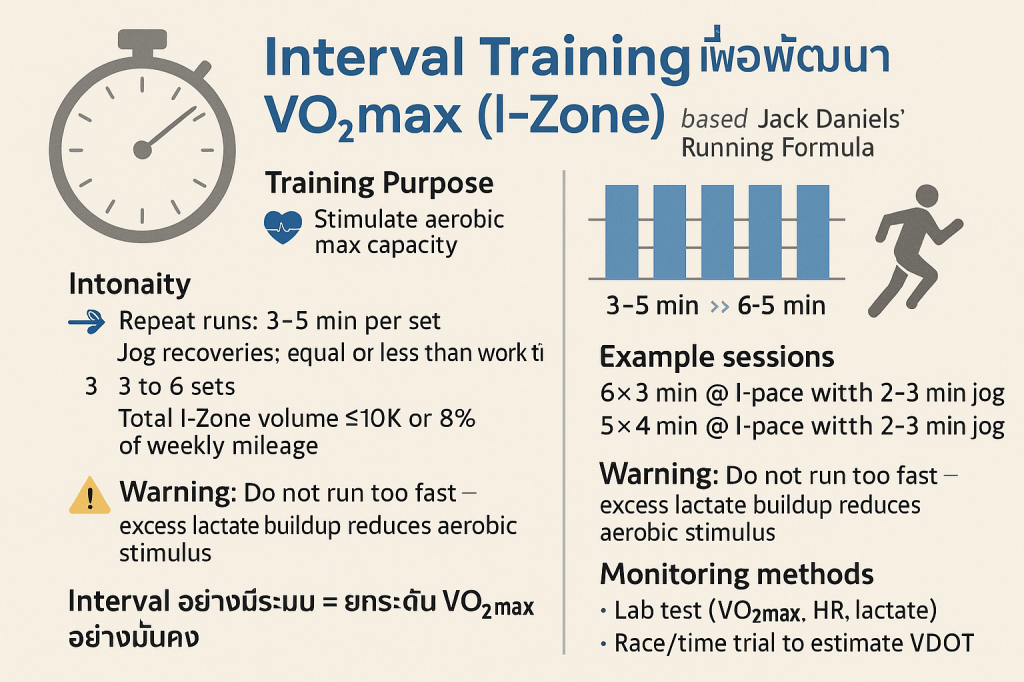 - Interval Training (I zone) เพื่อดึงศักยภาพ VO₂max ออกมา