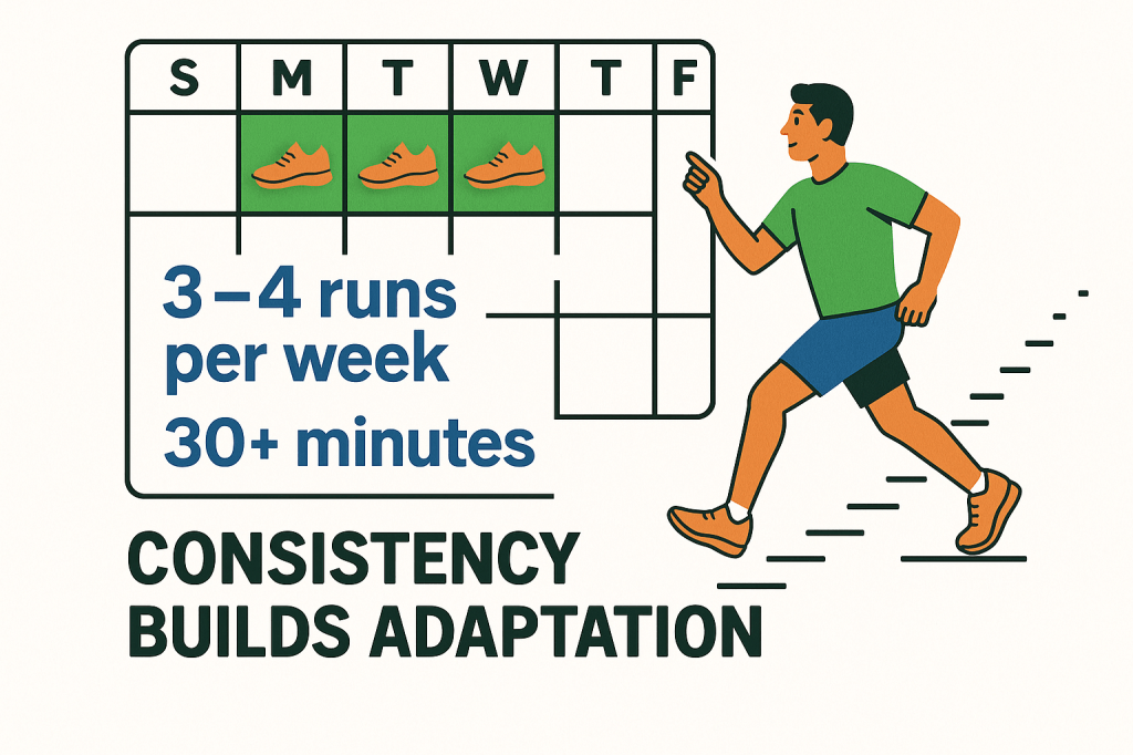 ความสม่ำเสมอเป็นหัวใจสำคัญของการฝึก ร่างกายต้องการความเครียดที่สม่ำเสมอและซ้ำๆ เพื่อปรับตัวและสร้างการเปลี่ยนแปลงทางโครงสร้างที่จำเป็นต่อประสิทธิภาพการวิ่งที่ดีขึ้น