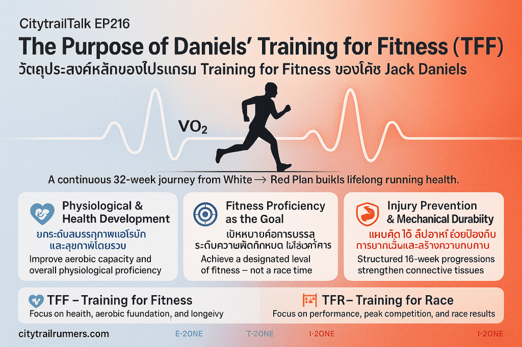 | ลักษณะเด่น | Training for Fitness (TFF) | Training for Race (TFR) |
