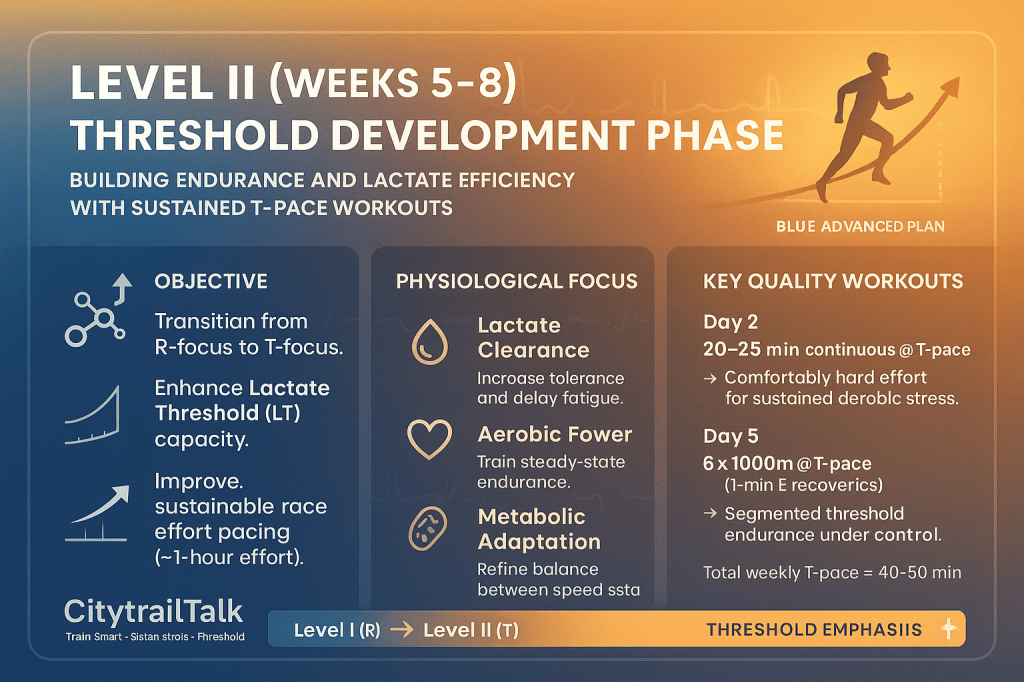 Workouts ใน Day 5 ของ Gold Level III มุ่งเน้นไปที่การปรับปรุง เกณฑ์แลคเตท (Lactate Threshold) และความสามารถในการวิ่งอย่างยั่งยืนที่ Pace นั้น