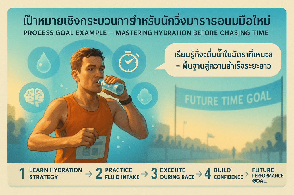 เป้าหมายเหล่านี้เป็นเป้าหมายที่มีความสำคัญอย่างยิ่งต่อการพัฒนาทางสรีรวิทยาและจิตวิทยาของนักวิ่งในระยะยาว เป้าหมายเชิงกระบวนการช่วยให้การแข่งขันแต่ละครั้งมีวัตถุประสงค์เฉพาะเจาะจง และสามารถประสบความสำเร็จได้แม้ว่าผลลัพธ์ภายนอก (เวลาหรือตำแหน่ง) จะไม่เป็นไปตามที่หวังก็ตาม