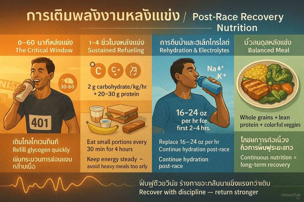การวิเคราะห์หลังแข่ง (Post-Race Analysis) ถือเป็น องค์ประกอบสำคัญสุดท้ายของผลงานสูงสุด (the final critical component of peak performance) ในบริบทของ กลยุทธ์การแข่งขันและการวิ่ง (Race Execution) ภายใต้แนวคิดของ Daniels’ Formula การแข่งขันไม่ใช่เพียงแค่การสิ้นสุดของการฝึกซ้อม แต่เป็นจุดเริ่มต้นของวงจรป้อนกลับ (feedback loop) ที่จะนำไปสู่การปรับปรุงในอนาคต