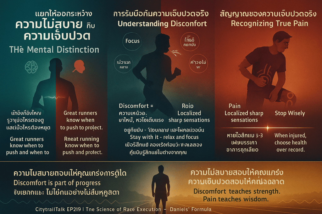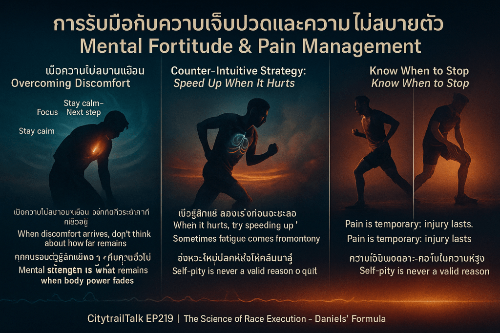 เมื่อความรู้สึกไม่สบาย (discomfort) หรือความเหนื่อยล้ามาถึง นักวิ่งควรใช้ความแข็งแกร่งทางจิตใจที่สั่งสมมา:
