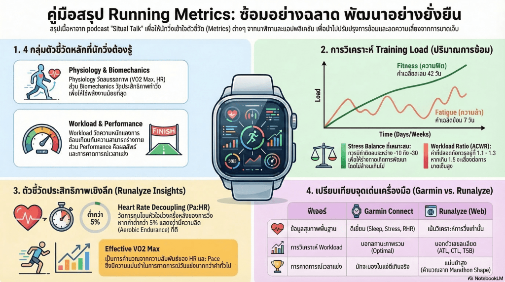 Metrics ทั้งหมดคือ “เข็มทิศ” ที่ช่วยให้เราซ้อมได้อย่างชาญฉลาด (Train Smarter, Not Harder) แต่อย่าลืมว่าไม่มีข้อมูลไหนแม่นยำเท่ากับการ “ฟังเสียงร่างกาย” ของตัวเอง